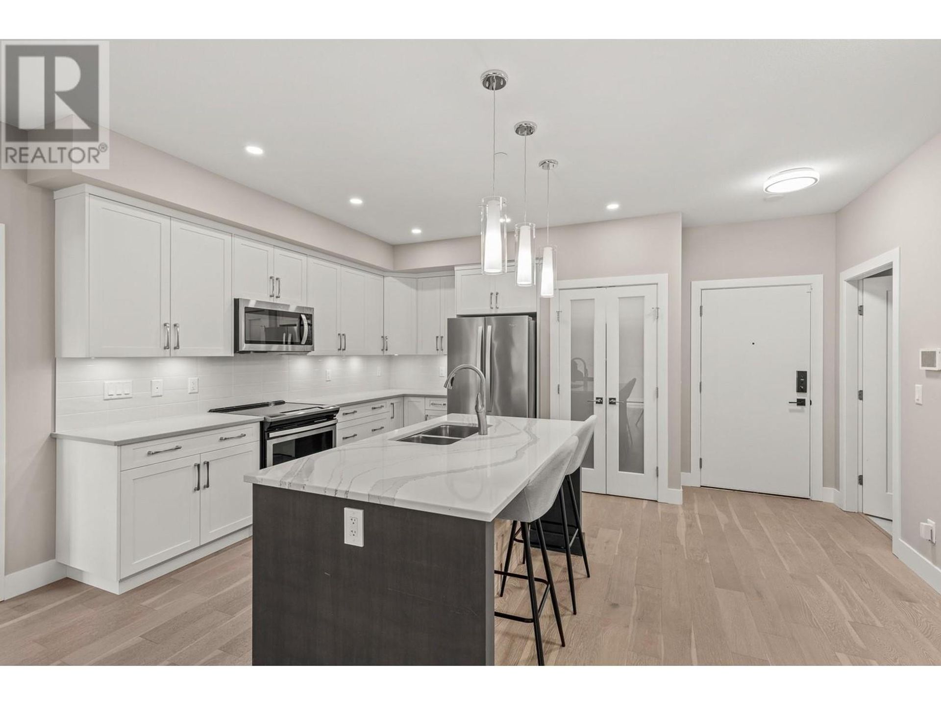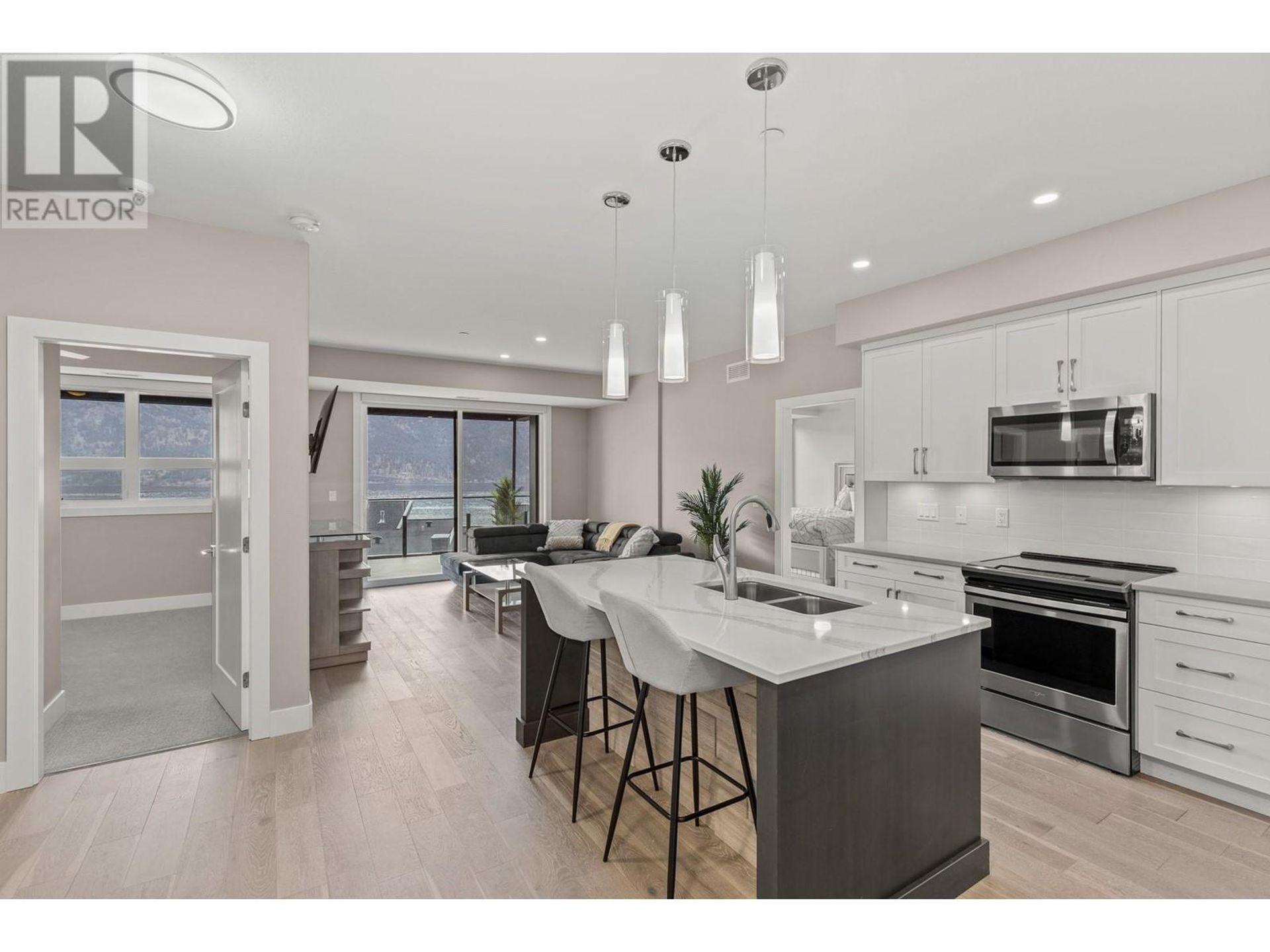Situated above Okanagan Lake in the heart of Wine Country, yet only a short drive away from the shops & stores in nearby Glenmore, 208-3475 Granite Close is a 2 Bed + 2 Bath Condo in the purpose-built McKinley Beach neighborhood. The spacious kitchen features a gas range, expansive center island, ample pantry space and a separate laundry & storage room. Floor-to-ceiling windows in the master provide stunning Lake Views. Outside a massive 25’x9’ covered deck with B…BQ hookup is ideal for entertaining. Whether relaxing by the outdoor pool in the warmer months or unwinding in the rooftop hot tub with panoramic Lake Okanagan views, this residence has it all. The building offers secure underground parking plus an efficient storage unit on the same floor as your residence. Only 16km from Downtown Kelowna and 11.5km to the Airport, McKinley Beach is designed for the Okanagan lifestyle boasting a km of level access beachfront, private marina, outdoor courts, gardens, trails and under construction community center with gym and indoor pool (id:14735)